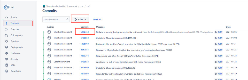 1、寻找自己需要的CEF版本,这里Branch为4389,commit为b36241d